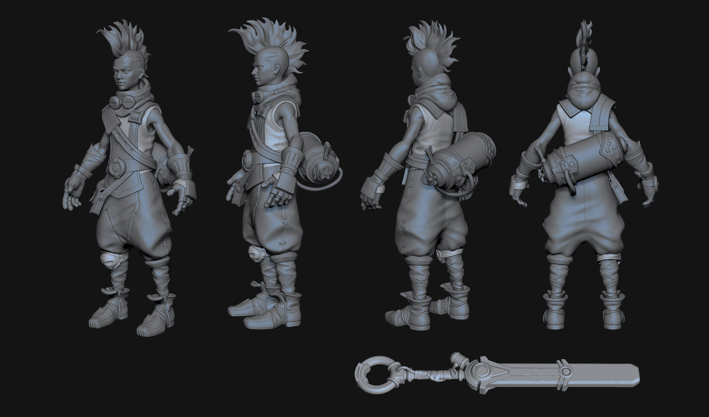 Ekko,the boy who shattered time, is one of the champions in the League of Legends. While working on Ekko, I envisioned a skilled assassin who defeats his enemies and anyone who challenges hims. Ekko’s abilities help him to capture the enemy’s base. In order to create to a high polygon model of Ekko, I attempted to utilize the daring proportions and silhouettes associated with Riot characters.